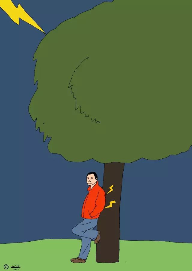 如果你在旷野中徒步,雷雨突然来了,旁边有一棵枝繁叶茂的大树,你选择去树下避雨,就很容易遭到雷击。