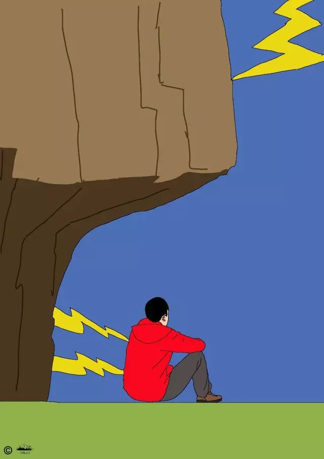 由于岩石不是很好的导电体,如果闪电击中山体高处,巨大的电流需要寻找别的导体通向地面。当你在悬崖下洞穴中避雨时,闪电会选择你的身体作为通往地面的“道路”。