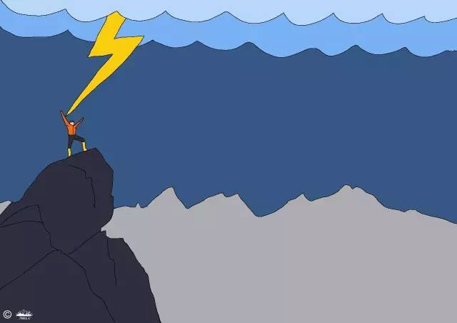 雷雨来临时在山顶逗留是一种作死行为,因为山顶离云层近,山顶也是闪电喜欢击中的制高点。所以雷电来临时,尽可能快地远离山顶。