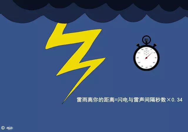 如果你身处山区,远处已经有了雷声,你可以简单判断雷雨离你的距离。用雷声与闪电之间的时间差(秒)乘以0.34,可以大致判断雷雨距离(公里)。