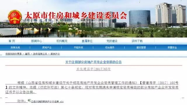 日前,太原市住建委发布公告,根据相关文件精神,依据《行政许可法》规定,太原市对有效期满未申请核定资质等级的712家房地产企业开发资质证书予以注销。这些房地产企业开发资质被注销的消息一出,不少购买了这些房地产开发企业楼盘的业主开始担心了。