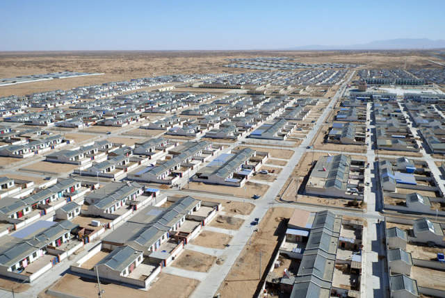 ↑这是甘肃省武威市古浪县黄花滩生态移民安置区(2月18日摄)。新华社记者范培珅摄在吴起退耕还林国家森林公园的展览馆内,一张照片引人注目:一个陕北年轻人正在执笔勾画,周围簇拥着一群乡亲,正商量退耕规划。照片中的年轻人叫闫志雄,今年已53岁。他参与并见证了家乡从“黄土坡”到“万绿园”的变化。