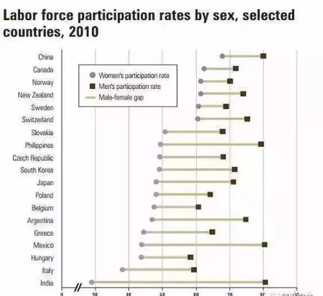 数据显示,中国女性劳动参与率高达70%,领先世界上所有国家,要知道,印度女性该数据不到30%,法国男性才62%,也就是说,中国女性比法国男性还要勤劳。