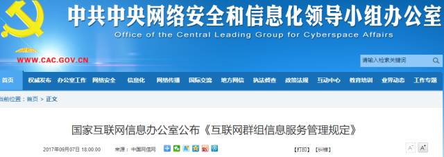 9月7日,国家互联网信息办公室发布《互联网群组信息服务管理规定》(以下简称《规定》),对大家广泛使用的微信等具有群组功能的互联网信息服务,以及各参与方怎样通过共同努力确保安全、合法使用群组信息服务,提出了较为明确具体的要求,也明确了国家互联网信息办公室的监管职责。