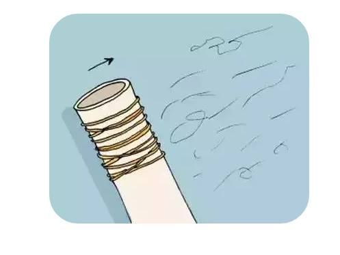 在保鲜袋纸芯的一头缠上橡皮筋,手握保鲜袋纸芯没有缠橡皮筋的一头,让缠了橡皮筋的一头与后背贴紧,来回扫后背,后背上的头发就全都缠在橡皮筋里了。