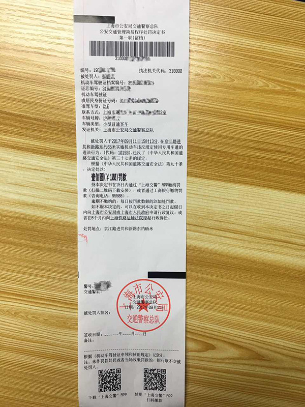 通过此次升级改造,民警开具的当场简易处罚决定书上将增加“银联云闪付”二维码。“上海交警”APP相应增加罚款扫码支付功能,用户可通过“上海交警”APP扫描处罚决定书上的支付二维码支付。