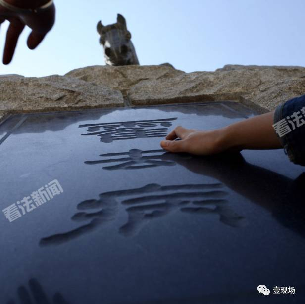 法制晚报·看法新闻记者注意到,从山门到霍去病雕像之间的距离不到一百米。如今,雕像下面刻有“霍去病”三个字的黑色大理石已经被摸得很光滑,在法制晚报·看法新闻记者在现场的四十分钟里,有200多人触摸过“霍去病”三个字。
