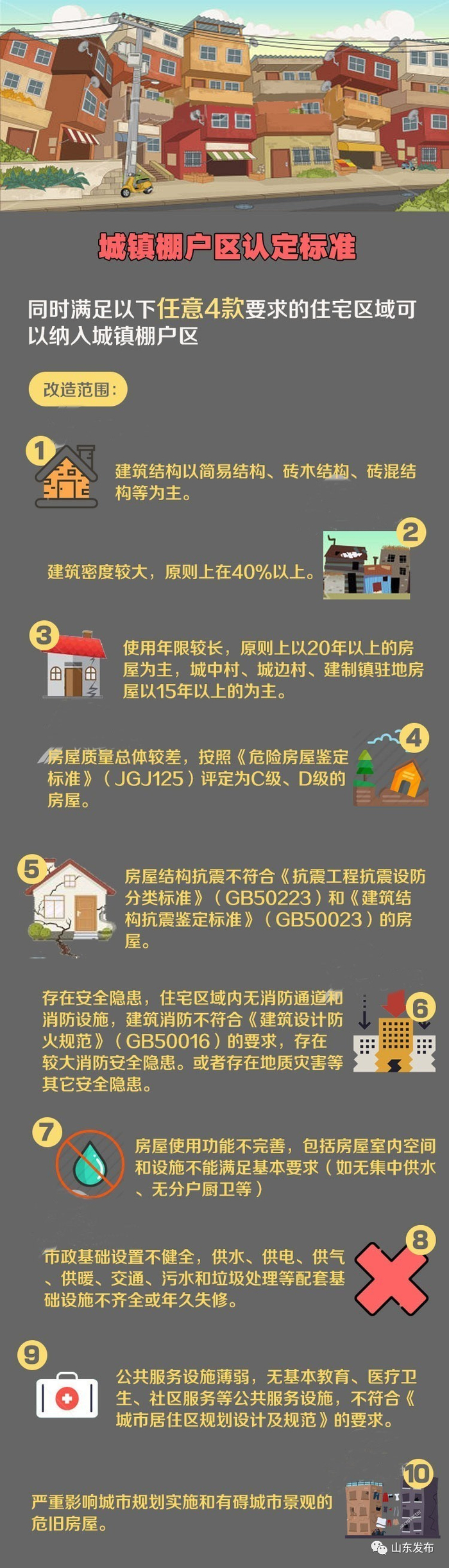 山东省从10个方面认定城镇棚户区改造项目标准: