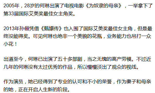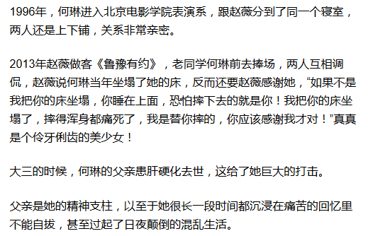 1997年,室友赵薇凭借《还珠格格》一夜爆红,何琳也不甘示弱,参演了国内第一部反映婚外恋的电视剧《牵手》。