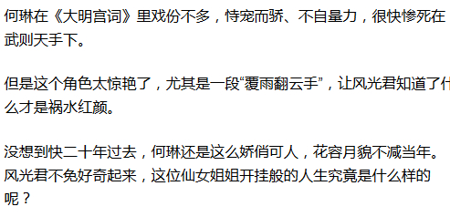 照片右下角这位冻龄美人成功吸引了风光君的注意,精致的小脸,灵动的神采,这不是当年“小太平”周迅的女神——贺兰姐姐何琳嘛。