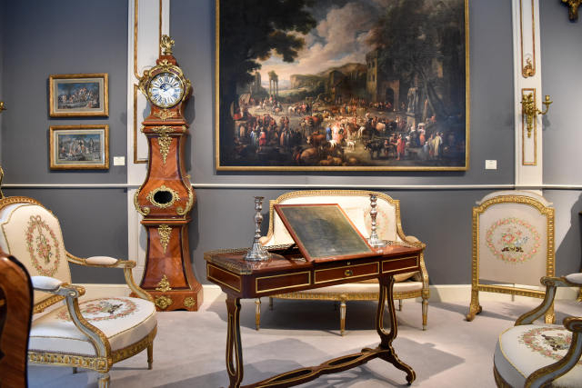 ↑这是9月11日在法国巴黎古董双年展上拍摄的一处展览陈设。