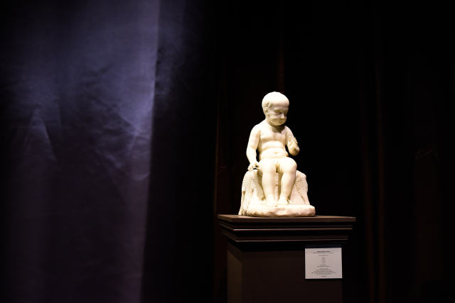 ↑这是9月11日在法国巴黎古董双年展上拍摄的一座雕像。