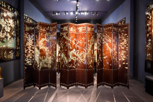 ↑这是9月11日在法国巴黎古董双年展上拍摄的屏风。新华社记者陈益宸摄