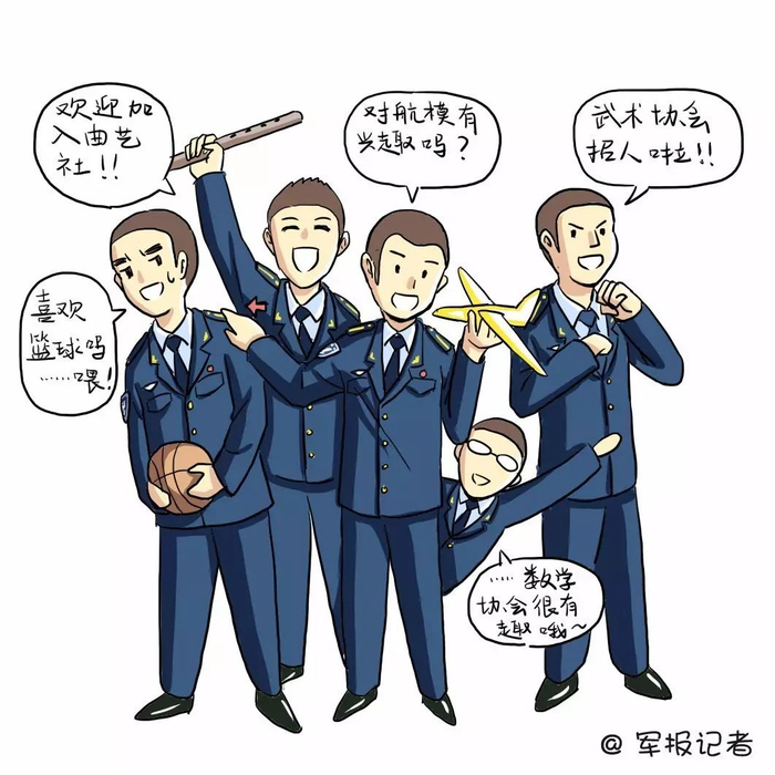 篮球社、曲艺社、武术协会、航模协会……社团活动样样不缺,文艺演出精彩纷呈,军校生活也多彩。