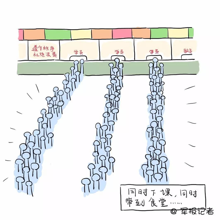 全校同时下课,所有学员一起奔向食堂,场面可以想象。偶尔不用等的饭菜真的很可贵。