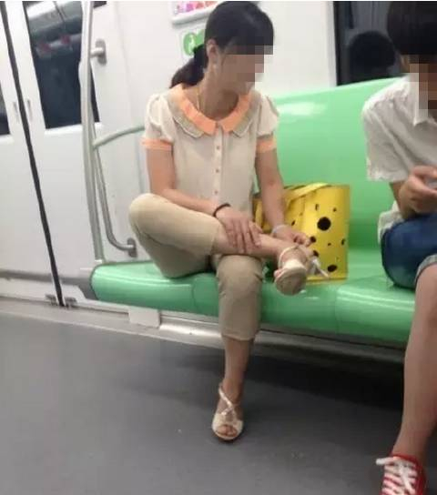 在地铁上脱鞋是小编最讨厌的,味道难闻不说,影响市容,真的很恶心。