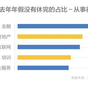 从行业看,从事金融行业的人最为忙碌,38%的金融人去年没有将年假休完,远高于看似“披星戴月”的互联网行业。对于从事金融行业的上班族来说,巨大的KPI压力是阻碍他们出去旅游的最大绊脚石。