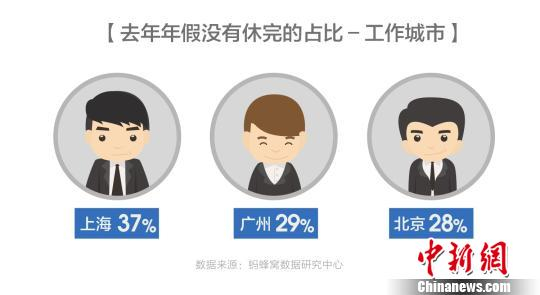 从城市来看,上海上班族最难休假,37%的人没有将去年的年假休完。相比之下,北京和广州的上班族比较幸福,没有将年假休完的人群分别仅占到28%和29%。