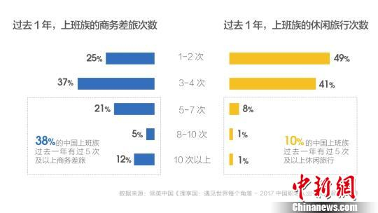 虽然假期在不断增加,中国人的度假旅行频次,却远低于差旅频次。中国白领年均私人旅行的次数仅为2.8次,但年均出差却达到4.7次。过去一年中,近四成(38%)的上班族出差次数超过5次,相比之下,年均私人旅行5次以上的上班族仅占到10%。