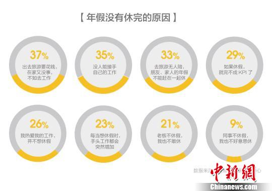 按照《职工带薪年休假条例》规定,工作1年以上,职工可享受为期至少5天的带薪年休假。但现实职场中,相当一部分上班族休不完年假。报告显示,35%的上班族表示,不休假的原因是没有其他同事能接手自己的工作。休不了假的另一大原因是无人陪伴。33%的白领没有将年假休完的原因之一是朋友、家人无法凑在一起休假。