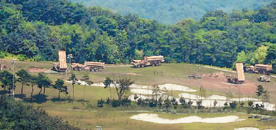 图为日前韩国将“萨德”系统剩余4辆发射车运抵星州高尔夫球场部署。资料图片