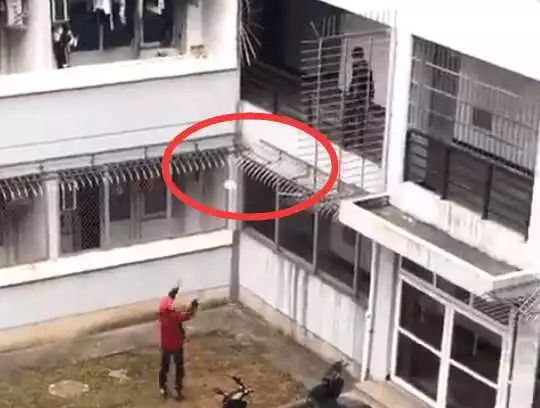 只见外卖小哥熟练地将手中的外卖抛上二楼,楼上的同学也灵巧地接住,顺利完成交易。