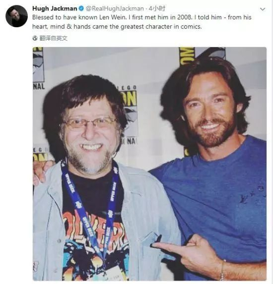 休·杰克曼发推文纪念韦恩。