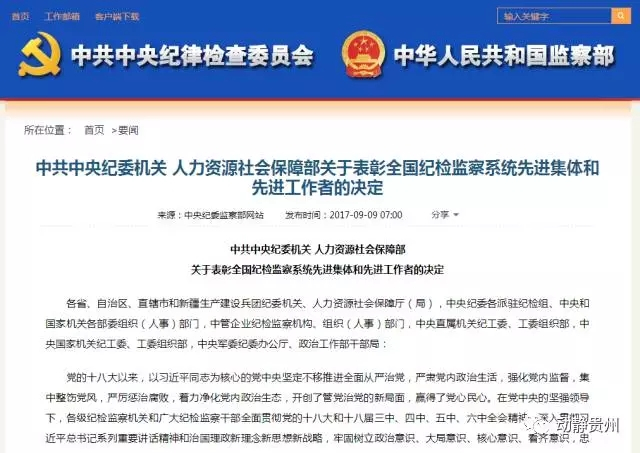 关注丨中纪委、人力资源社会保障部表彰贵州3地纪委和1名个人