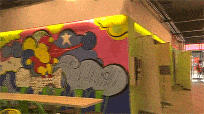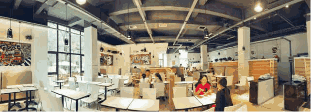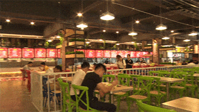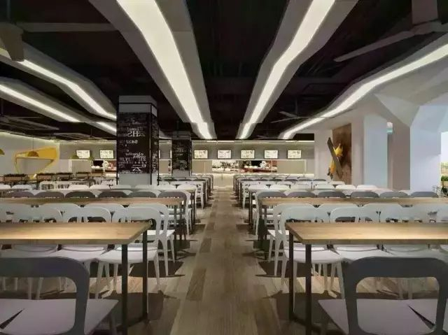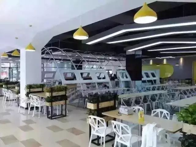 小清新、现代化、咖啡馆式、装饰品充斥每个角落,当时刚晒出来时,不少网友感慨,“真是别人家的食堂”。整个食堂的装修非常有格调,颜色鲜明的桌椅,四处可见的绿植、具有设计感的灯具,连地板都是个性的复古风,让人不禁怀疑这是一个“假食堂”。