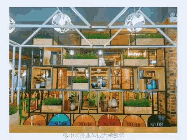 最有感觉的就是盆栽书架和绿植隔断,为大家制造出了一个个有情调的小空间,在食堂吃饭也有“小包厢”,这么高级,也是没sei了~