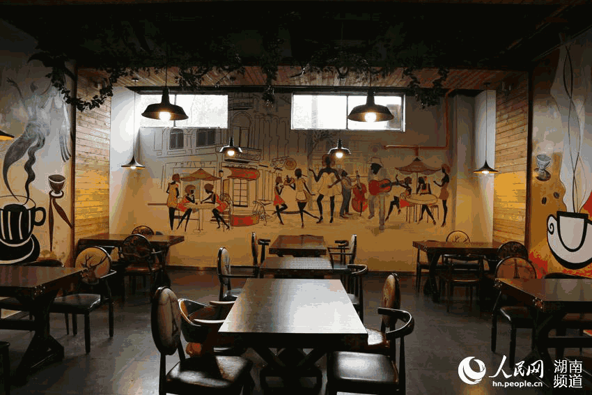 小清新,LOFT风格,灰黑色的基调,加上木质隔断,白色的桌椅,墙上的各种招贴画,与目前很流行的咖啡馆装修有几分相似。