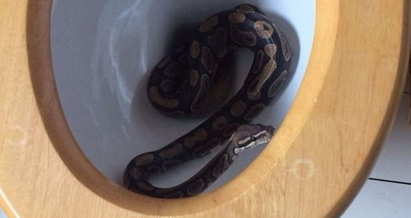 英女子家马桶中现1米长蟒蛇 淡定将其降伏(图)