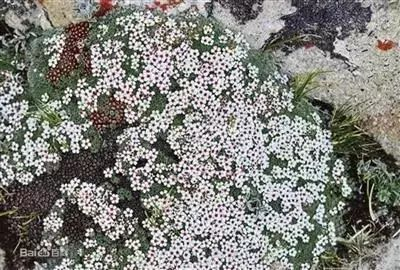 众花中的小清新,每年6月开花,白色的花瓣中间是玫红色的花蕊,生长在大石块或苔草垛上,常被人称作苔藓。