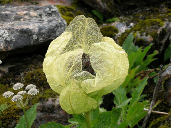 花期:5—6月。这是一种常见的野花,有人形容它像打着黄色小伞的矮人,黄苞南星的茎可入药,在藏医中有多种用途。