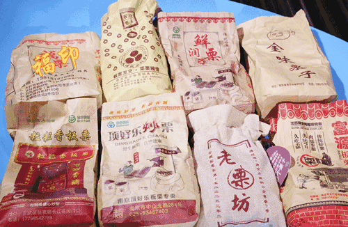 明瓦廊里的一家小店,栗子个头比较小,剥起来板栗仁容易碎,甜度一般,吃起来比较硬, 比较不好的是包装袋,热气一熏容易通。