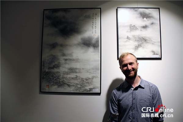 几位参展艺术家现场为观众介绍了各自的作品。女画家李关关说,她喜欢画马,可以通过写实的马表现一种情绪。艺术家宓冬莹从小学中国画,后来旅居日本18年,她的“彩墨物语”系列作品有着鲜明的艺术风格。她介绍说,她的画以石头和花为题,将花的瞬间定格在石头里,展示新的生命。参展艺术家中唯一的波兰画家波尔科夫斯基有个中文名字叫白伟。他毕业于中国美术学院中国画系,是该系历史上第一个获得毕业创作金奖的外国留学生。他的《相遇系列》融合了中国传统山水画与诸多未来时空元素,展现了中西合璧。白伟在讲解他的作品时说,画面上呈现了中国山水和宇宙飞船,中国山水代表中国传统文化,宇宙飞船则代表西方文化,他努力把两个元素结合起来。他喜欢画山水,因为山水能表现艺术家的心境。画上还特地配有摘自中国古代哲学家庄子《逍遥游》中的两句话,他觉得符合画的意境。