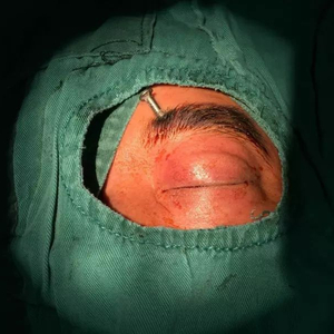 来自四川的陈先生是一名土工,9月5日下午,他和工友们如往常一样在莆田市的一家酒店施工,当时正在砌墙。其中一面墙上布有辅助施工的水平线,可能由于绷得太紧,用于固定线的一颗钉子突然弹出,意外发生了。“当时我刚好往那边走,弹出的钉子连着线就从我的左边眼睛上方插入,根本来不及躲闪。”陈先生说,钉子很长,而且弹出时力度大,瞬间插入眼睛,视力也受到了影响。工友们赶紧把他送到了当地医院,在医院拍了片子后,医生建议转诊到福州东南眼科医院。