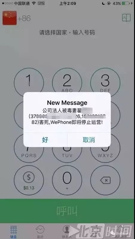 WePhone软件提醒“公司法人被害死,WePhone即将停止运营”北京时间 图