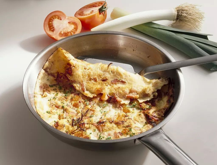 在锅底刷一层薄油,倒入适量面糊,缓缓转动锅使其均匀成形,一面煎至金黄微焦后,翻面煎另一面。两面煎好后,起锅切成小块装盘食用。