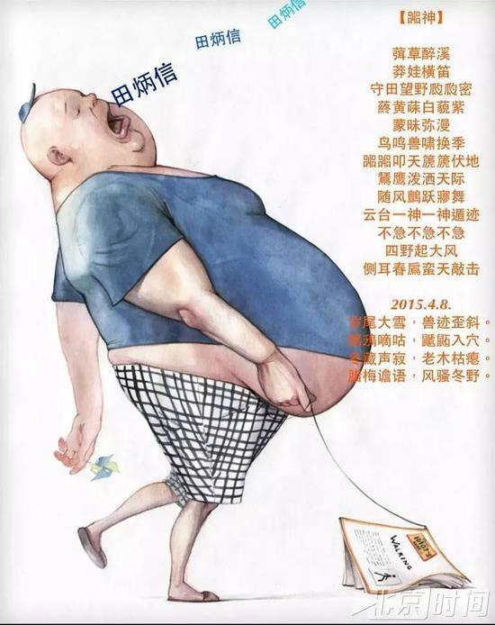 最与众不同的是,他的诗需要注解。因为不看注解,便好些字不认得。那些字绝无杜撰,并非生造。它们确实存在过,鲜活过,有据可查。那些字也不是字体变异,如书法中的篆书和草书,一般人认不全。那是一些已经死了的字。静静地,躺在那里。或者已是深度休眠,尘封已久。字形字义发音都在,只是人们鲜有触及。不知由于什么契机,他暗自发愿:激活它们!激活?激活《尓雅》以及先秦时期的现在很少使用的死了的字(专业术语叫冷僻字)。多大的发愿啊!他只用两招。一招是给孩子上课,教识字。识字其实不难,知道它们的发音和含义,就齐活了。如果孩提时期一开始就接触这些字,使用这些字,那它们就仿佛不曾死过。成年人呐,自学就成。飍燚森垚鑫,猋驫麤犇羴雥龘,馫靐毳惢厵皛。望形知义,某类事物很多的意思。现代人说,好多好多树木;古人说,森。现代人说,好大的水啊,一望无际;古人说,。汉字的本质是象形字,按部首偏旁归类,有规律可循。何况,中文语音输入法已经如此普及,简便实用,只要正确发音,就能检索选择。笔画繁多带来的书写不便,已经不再是问题。另一招就是应用。将这些字入诗,通过自媒体方式传播。他的近期诗作,大量使用这些死了的字,甚至刻意为之,好像在撰写诗体的《尓雅》,可谓用心良苦。读他近三年的诗,起初觉得诘屈聱牙,因为边看注释边看诗,不能一气贯通,颇有点费劲。待到不认识的字熟悉了,这些字,这些字组成的诗句,因其内涵丰富的信息量,反显得意境高古,耐人寻味。可以相信,他使用这些字已经驾轻就熟,写诗无需现查字典。也可以相信,一段时间后,会有更多的人不需借助注释就能感受这些复活古字的魅力。在这里,才表现出他自觉弘扬华夏文明的本质诉求,才凸显出他对中华文化传承的特殊贡献,才预示着他特立独行的诗歌创作又上升至一个新的境界。 “一个人要仰望多少次,才能看见苍穹”,这是美国流行民谣歌手鲍勃·迪伦的一句著名歌词,火爆全球。说明人类有梦想有追求具有普遍性,无独有偶,殊途同归。从大学时代担任学生诗社社长算起,坚持业余写诗创作已有四十年,仍未有穷期。他,叫田炳信。