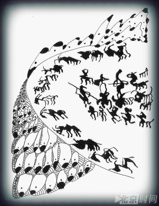 他的诗,写景居多。日月星辰、四季时节、高山流水、荒漠雪野、树木花草、虫鸟野兽。。都是自然景观。他不写都市繁华,尽管常年居住中国一线大城市。这形成某种反差。因为他的读者,多半也是在都市生活。嘈杂、拥堵、寸土寸金、人满为患。浮躁和焦虑,已是世界范围的通病,现代工业的后遗症。所以他向往自然。他的笔下,满满的,全是欢快的味道、自由的气息。他的自然并非纯自然,而常常是想象中的自然。黑老虎、白老虎、獐子、羚羊、骏马、白豹子、白狐狸、四蹄皆白的野猪,再加上螳螂、蚯蚓、成群的蠓虫,齐聚一堂。这种景观场面,恐怕在肯尼亚的马赛马拉国家野生动物保护区也见不着。他写进《兽野狄》。其状如蛇、四翼、六目、三足的神鸟,叫酸与,还有貔貅、猰貐、肥遗、鴸鸟、狸力等等,那些只在神话传说中存在的怪鸟怪兽,他写得有声有色,仿佛遇见过。他的很多诗作展示的场面和景观,在现实生活中是无法对应还原的。这需要怎样的想象力啊?他谦虚,不说自己的创造,只告诉我们,远古时期,我们的祖先早就想出来了。同时,他也许还在暗示:从那以后,人类进化几千年,就文学创造的想象力而言,并没有走多远。他的诗,画面感极强,并且大多是立体的画面、动态的画面。他擅长把读者引入到一个营造的空间,有天、有地、有静物、有动物、有时还有声音。风雨雷电,鸟唱虫鸣,花草茂盛,禽兽共生。他相信,也许史前某个时间节点,这样的场景是真实存在过的。他的诗作构成的画面,多数还色彩缤纷。湛蓝的天空,雪白的原野,金色的太阳,翠绿的林叶,斑斓的虎豹,黑色的熊罴,更不必说各种禽类和花草。赤橙黄绿青蓝紫,鲜艳华丽。他常用以下方式描绘颜色:或直接使用代表颜色的形容词;或借助人们的常识判定物像本身具有的颜色。颜色本是绘画的材质。他也作画,声名赫赫的灵意画就是他的原创。但他作画不使色,只用白纸硬笔。说来有趣,绘画应该使用色彩,他却不用,偏以结构意象取胜(须知意象本是诗的特质哦)。诗歌本是语言艺术,并不形成平面直观可视图形,他偏浓墨重彩,渲染颜色。就是这样子:作画,黑白相间,单色图像;写诗,五彩杂陈,万紫千红。所以,他的诗,自由欢快之外,还很生动绚丽。