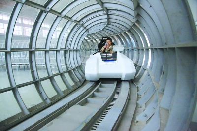 西南交通大学研发的世界第一套“真空管道磁浮车实验系统”