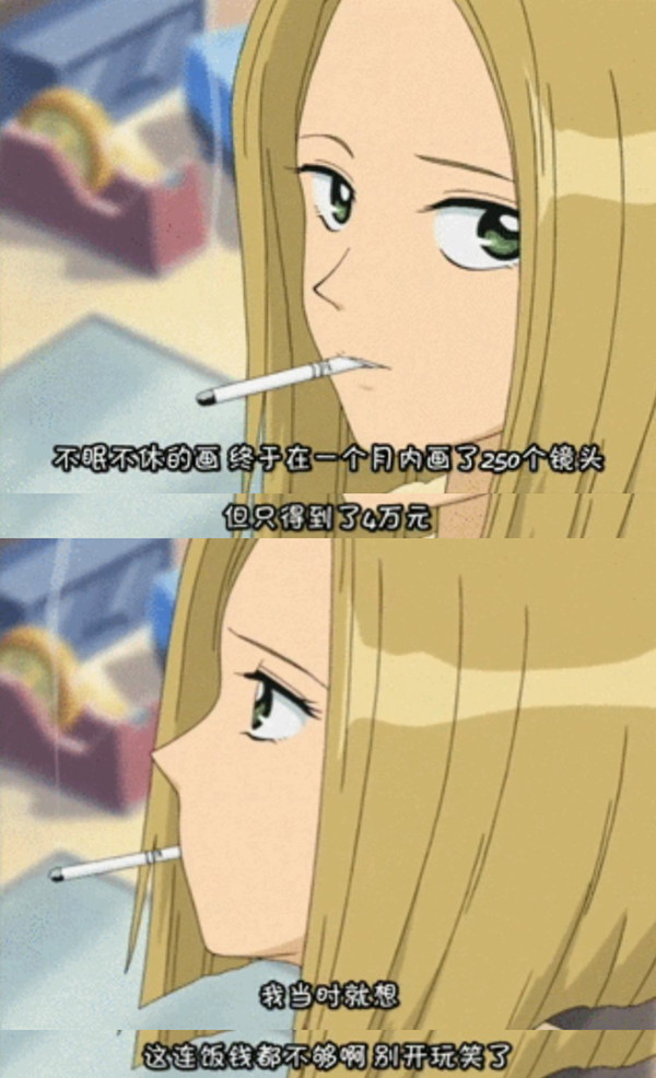 “自由”是“计件工”的代名词,意味着要拿到维持生计的报酬只能不眠不休地工作。完成一张原画所得到的报酬仅为200日元(约12元人民币),即便是熟练的画师,一天极限能画20张,加班加点的月收入仅为10万日元左右。