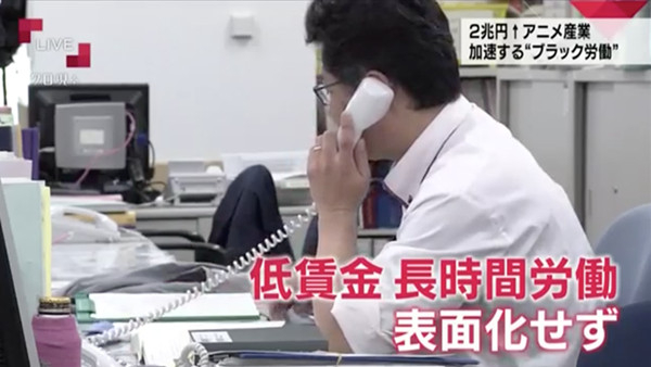 另一个问题是制作经费过低。电视台或电影公司给一集动画的制作预算一般为1000~1500万日元,对比一集日剧一集则在2000~5000万上下。随着观众对画面精细程度的追求日渐提升,目前动画的预算经费不足以支撑市场要求的质量,只有靠榨取动画制作人员以超长时间地工作来实现。