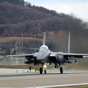 资料图片:挂载“金牛座”导弹的F-15K战斗机(韩联社)