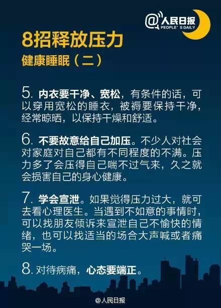 2.调节工作/学习压力。可能因为在工作上越来越给力,收入越来越高,所以越来越忙。我想到的也只是尽力去做好,晚上加班到10点,第二天8点又到单位,终于把身体给拖垮了。大家一定要权衡,量力而行。