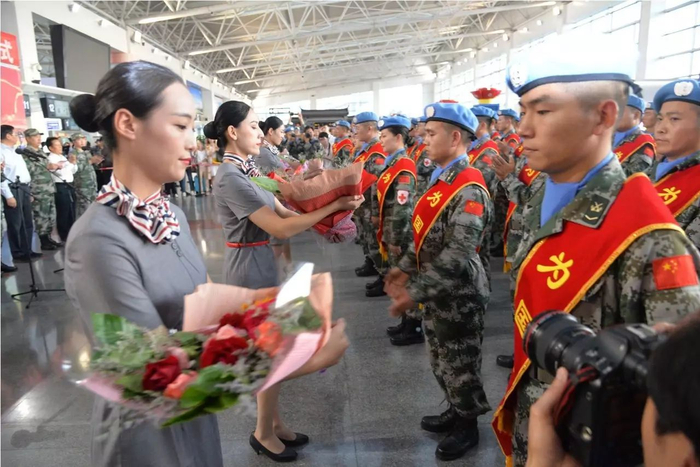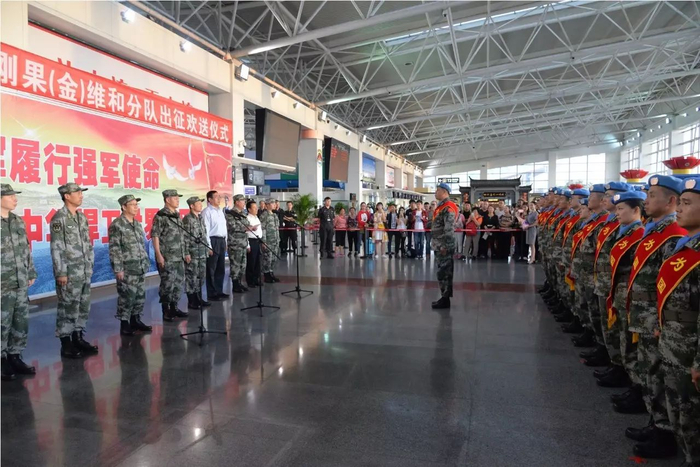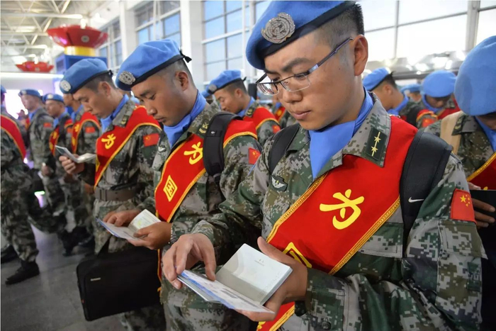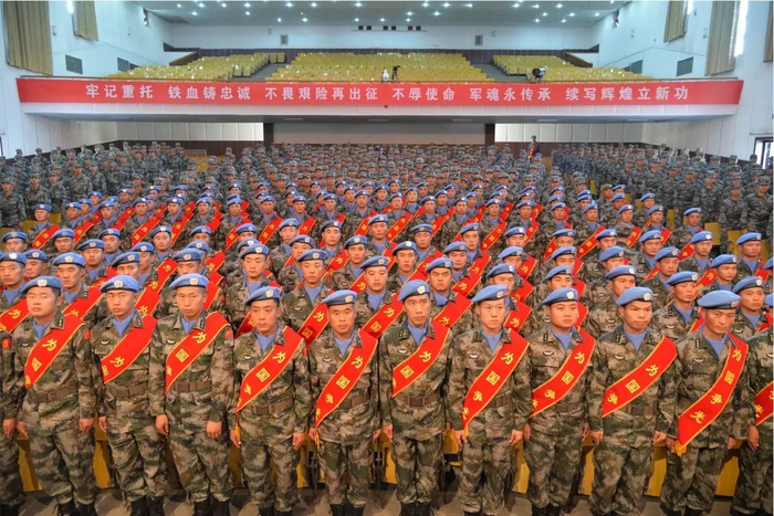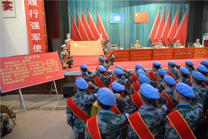 “蓝盔砺剑铸忠诚,维护和平壮国威。”出征官兵纷纷表示:要牢记祖国和人民的重托,圆满完成维和任务,努力在异国他乡展现蓝盔勇士的新风采,树立中国军人良好形象。