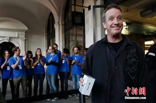 图为英国伦敦苹果专卖店,店员为iPhone 4S手机的购买者鼓掌。