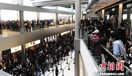 2011年11月11日,iPhone 4S在香港开售掀起狂风,在中环苹果旗舰店排起了长长的人龙。现场保安也加强戒备以防万一。