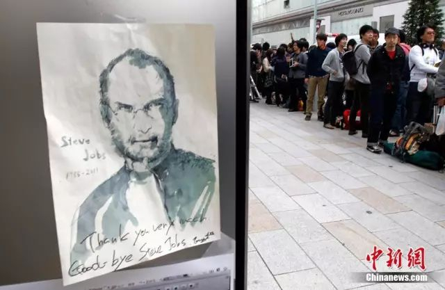 图为日本东京,一名男子头戴乔布斯面具排队等待购买iPhone 4S手机。